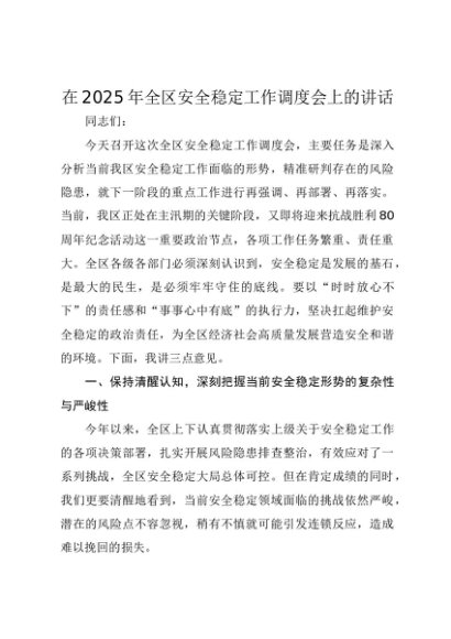 / 【七哥公文】2025年:在2025年全区安全稳定工作调度会上的讲话+更多免费公文+VX:QiGeGongWen2024