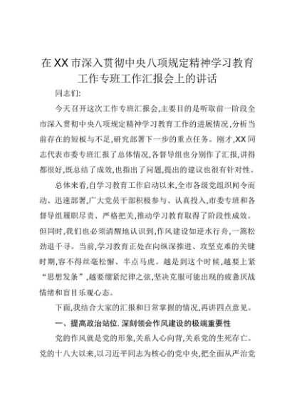 【七哥公文】2025年:在XX市深入贯彻中央八项规定精神学习教育工作专班工作汇报会上的讲话+更多免费公文+VX:QiGeGongWen2024