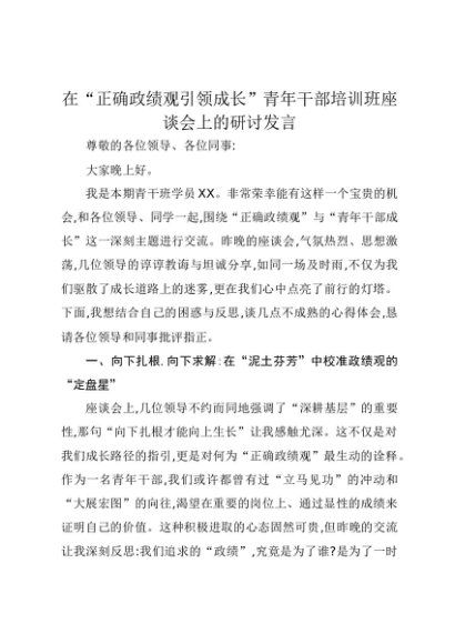 【七哥公文】2025年:在“正确政绩观引领成长”青年干部培训班座谈会上的研讨发言+更多免费公文+VX:QiGeGongWen2024
