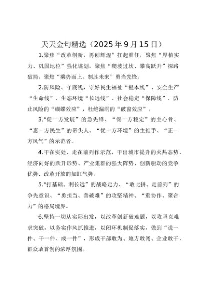 / 【七哥公文】2025年:天天金句精选(2025年9月15日)+更多免费公文+VX:QiGeGongWen2024