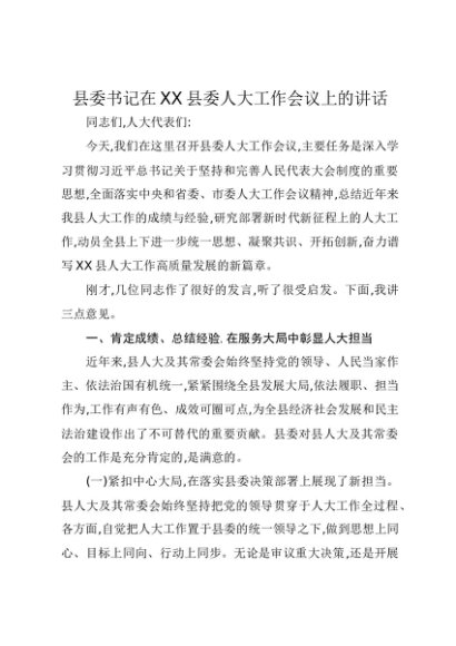 / 【七哥公文】2025年:县委书记在XX县委人大工作会议上的讲话+更多免费公文+VX:QiGeGongWen2024