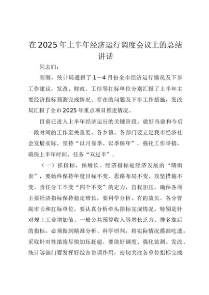 / 【七哥公文】2025年:在2025年上半年经济运行调度会议上的总结讲话+更多免费公文+VX:QiGeGongWen2024