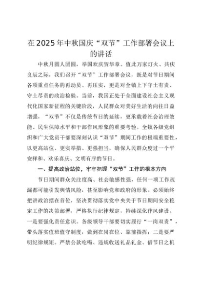 【七哥公文】2025年:在2025年中秋 国庆“双节”工作部署会议上的讲话+更多免费公文+VX:QiGeGongWen2024