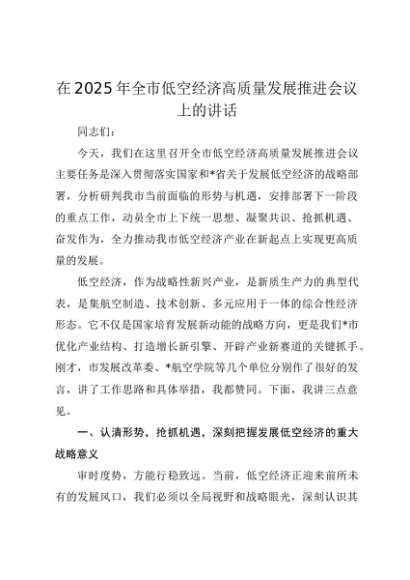 【七哥公文】2025年:在2025年全市低空经济高质量发展推进会议上的讲话+更多免费公文+VX:QiGeGongWen2024
