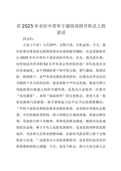 / 【七哥公文】2025年:在2025年全区中青年干部培训班开班式上的讲话+更多免费公文+VX:QiGeGongWen2024