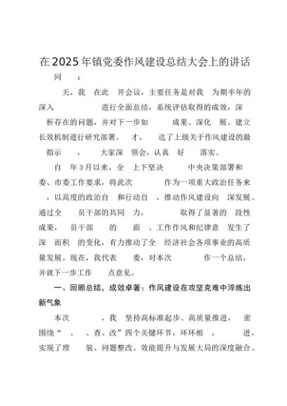 / 【七哥公文】2025年:在2025年镇党委作风建设总结大会上的讲话+更多免费公文+VX:QiGeGongWen2024