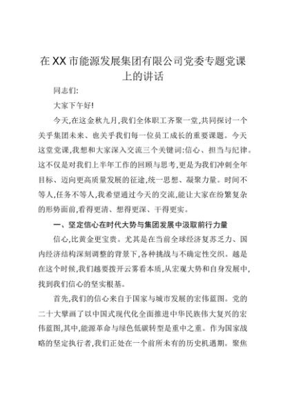 【七哥公文】2025年:在XX市能源发展集团有限公司党委专题党课上的讲话+更多免费公文+VX:QiGeGongWen2024