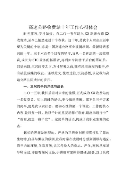 【七哥公文】2025年:高速公路收费站十年工作心得体会+更多免费公文+VX:QiGeGongWen2024