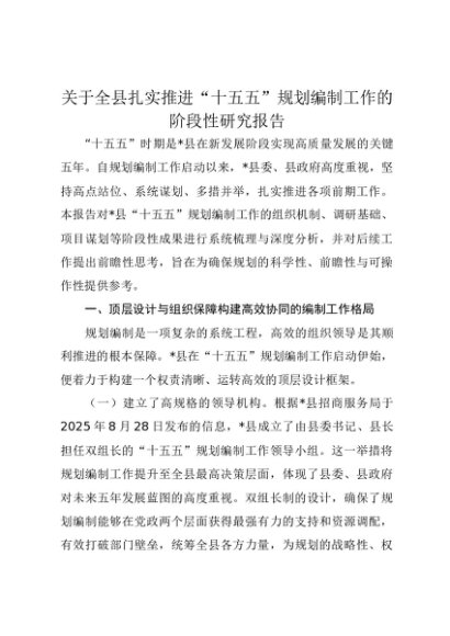 【七哥公文】2025年:关于全县扎实推进“十五五”规划编制工作的阶段性研究报告+更多免费公文+VX:QiGeGongWen2024