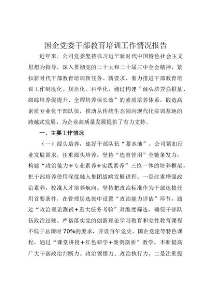 / 【七哥公文】2025年:国企党委干部教育培训工作情况报告+更多免费公文+VX:QiGeGongWen2024