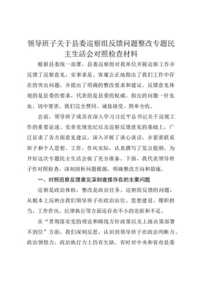 【七哥公文】2025年:领导班子关于县委巡察组反馈问题整改专题民主生活会对照检查材料+更多免费公文+VX:QiGeGongWen2024