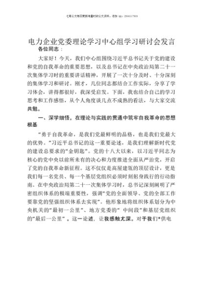 【七哥公文】2025年:电力企业党委理论学习中心组学习研讨会发言(第二十一次集体学习)+更多免费公文+VX:QiGeGongWen2024