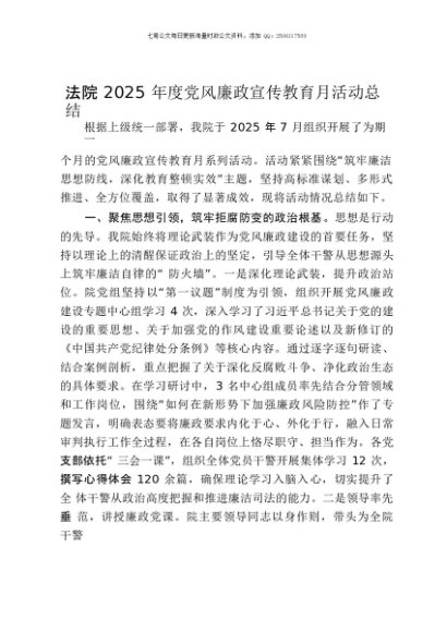 / 【七哥公文】2025年:法院2025年度党风廉政宣传教育月活动总结+更多免费公文+VX:QiGeGongWen2024