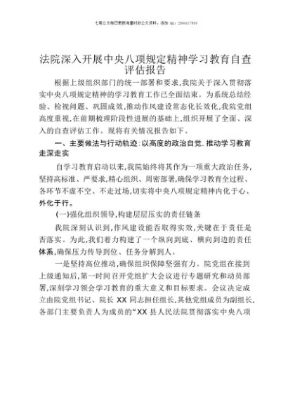 【七哥公文】2025年:法院深入开展中央八项规定精神学习教育自查评估报告+更多免费公文+VX:QiGeGongWen2024
