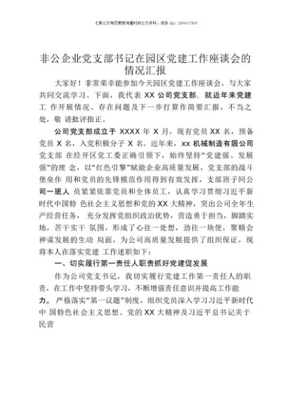 / 【七哥公文】2025年:非公企业党支部书记在园区党建工作座谈会的情况汇报+更多免费公文+VX:QiGeGongWen2024