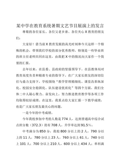 / 【七哥公文】2025年:某中学在教育系统暑期文艺节目展演上的发言+更多免费公文+VX:QiGeGongWen2024