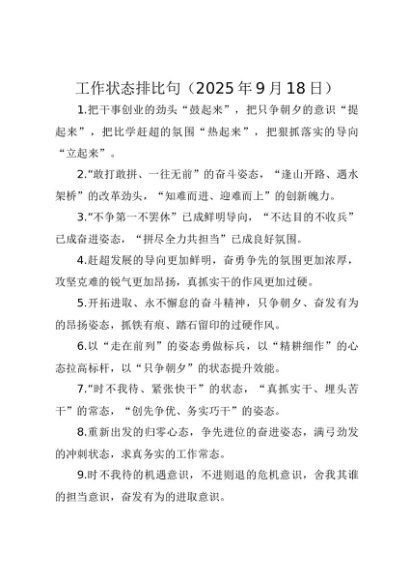 / 【七哥公文】2025年:工作状态排比句(2025年9月18日)+更多免费公文+VX:QiGeGongWen2024