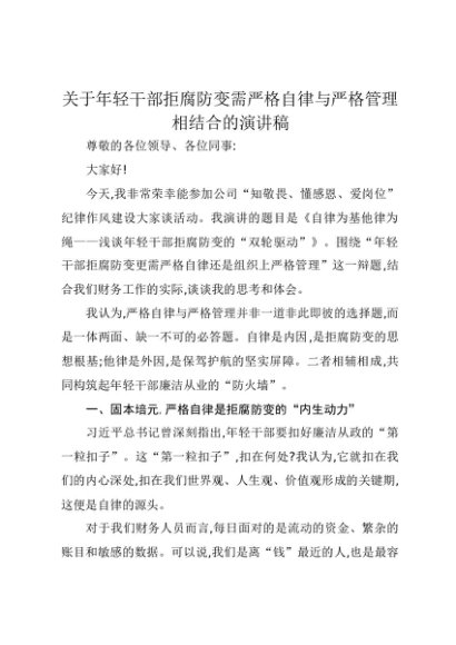 【七哥公文】2025年:关于年轻干部拒腐防变需严格自律与严格管理相结合的演讲稿+更多免费公文+VX:QiGeGongWen2024