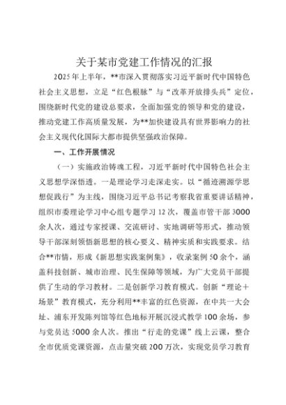 / 【七哥公文】2025年:关于某市党建工作情况的汇报+更多免费公文+VX:QiGeGongWen2024