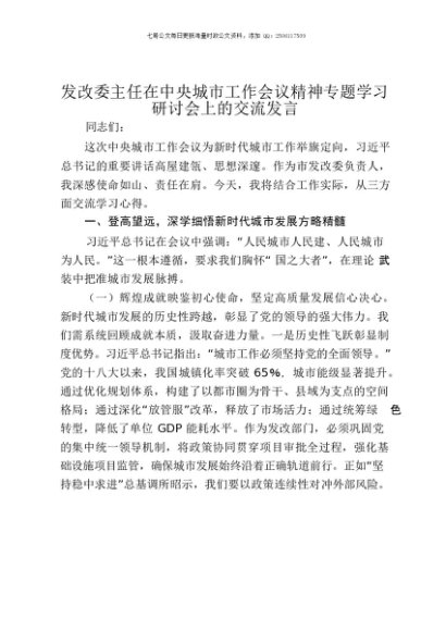 【七哥公文】2025年:发改委主任在中央城市工作会议精神专题学习研讨会上的交流发言+更多免费公文+VX:QiGeGongWen2024