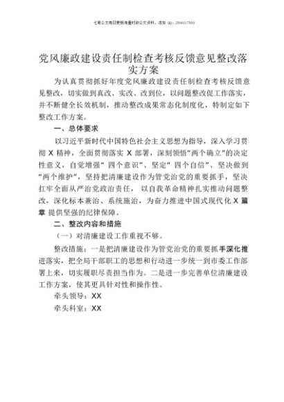 / 【七哥公文】2025年:党风廉政建设责任制检查考核反馈意见整改落实方案+更多免费公文+VX:QiGeGongWen2024