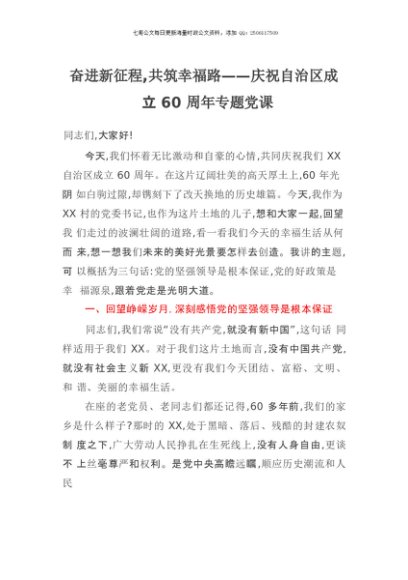 【七哥公文】2025年:奋进新征程,共筑幸福路——庆祝自治区成立60周年专题党课+更多免费公文+VX:QiGeGongWen2024