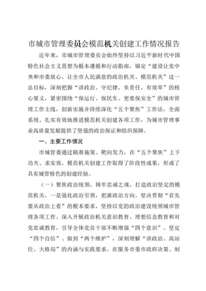 / 【七哥公文】2025年:市城市管理委员会模范机关创建工作情况报告+更多免费公文+VX:QiGeGongWen2024