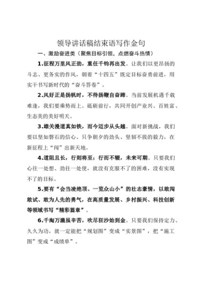 【七哥公文】2025年:领导讲话稿结束语写作金句+更多免费公文+VX:QiGeGongWen2024