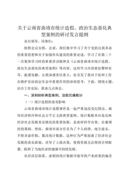 【七哥公文】2025年:关于云南省曲靖市统计造假、政治生态恶化典型案例的研讨发言提纲+更多免费公文+VX:QiGeGongWen2024