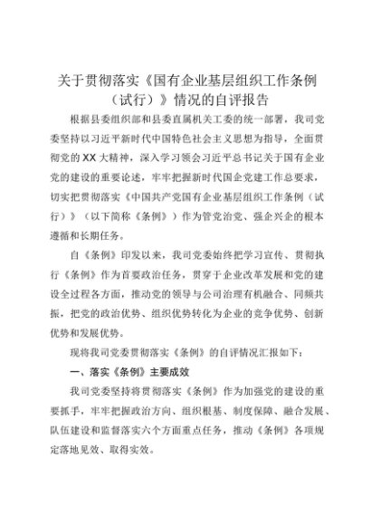 【七哥公文】2025年:关于贯彻落实《国有企业基层组织工作条例(试行)》情况的自评报告+更多免费公文+VX:QiGeGongWen2024
