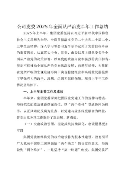 / 【七哥公文】2025年:公司党委2025年全面从严治党半年工作总结+更多免费公文+VX:QiGeGongWen2024