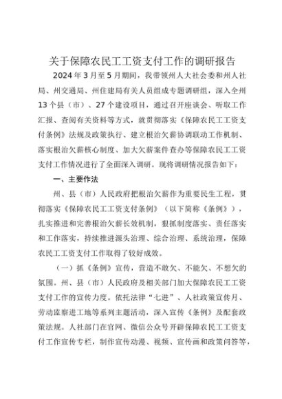 / 【七哥公文】2025年:关于保障农民工工资支付工作的调研报告+更多免费公文+VX:QiGeGongWen2024