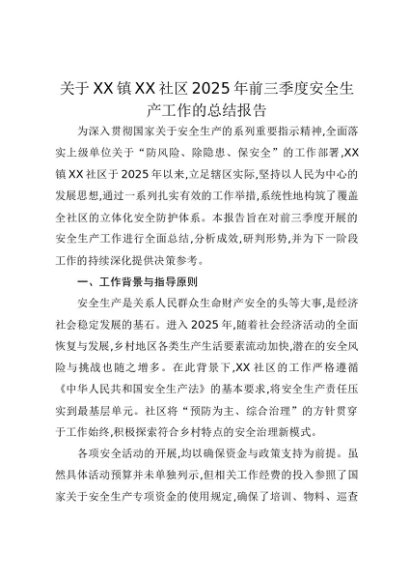 【七哥公文】2025年:关于XX镇XX社区2025年前三季度安全生产工作的总结报告+更多免费公文+VX:QiGeGongWen2024