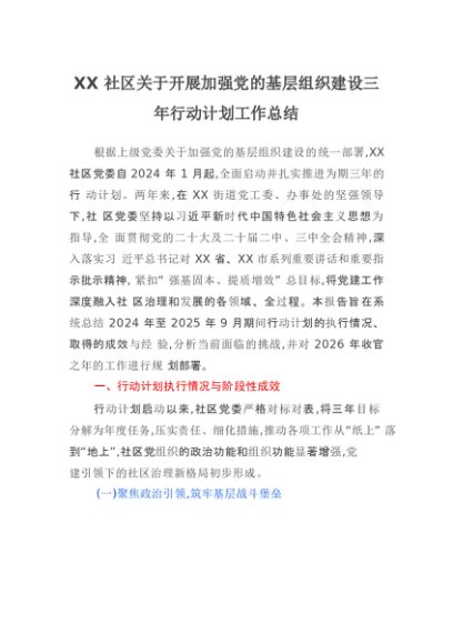 【七哥公文】2025年:XX社区关于开展加强党的基层组织建设三年行动计划工作总结+更多免费公文+VX:QiGeGongWen2024