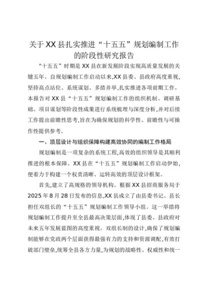【七哥公文】2025年:关于XX县扎实推进“十五五”规划编制工作的阶段性研究报告+更多免费公文+VX:QiGeGongWen2024
