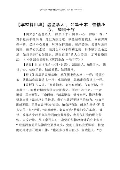 【七哥公文】2025年:【写材料用典】温温恭人,如集于木;惴惴小心,如临于谷+更多免费公文+VX:QiGeGongWen2024