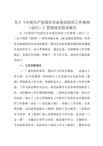 【七哥公文】2025年:关于《中国共产党国有企业基层组织工作条例(试行)》贯彻落实情况报告+更多免费公文+VX:QiGeGongWen2024