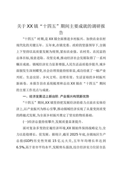 【七哥公文】2025年:关于XX镇“十四五”期间主要成就的调研报告+更多免费公文+VX:QiGeGongWen2024