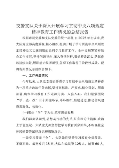 【七哥公文】2025年:交警支队关于深入开展学习贯彻中央八项规定精神教育工作情况的总结报告+更多免费公文+VX:QiGeGongWen2024