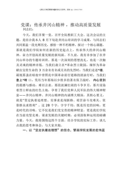 / 【七哥公文】2025年:党课讲稿:传承井冈山精神,推动高质量发展+更多免费公文+VX:QiGeGongWen2024