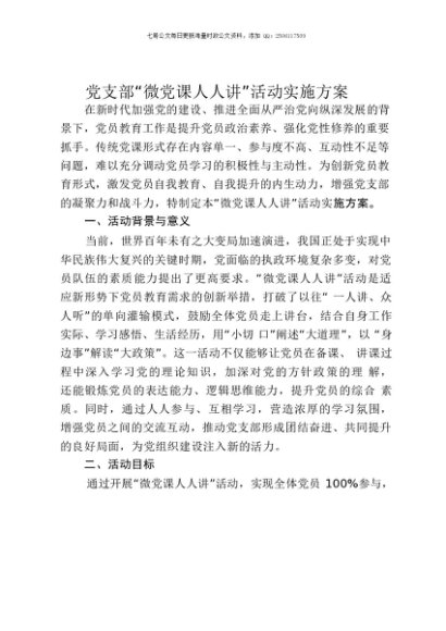 / 【七哥公文】2025年:党支部“微党课人人讲”活动实施方案+更多免费公文+VX:QiGeGongWen2024