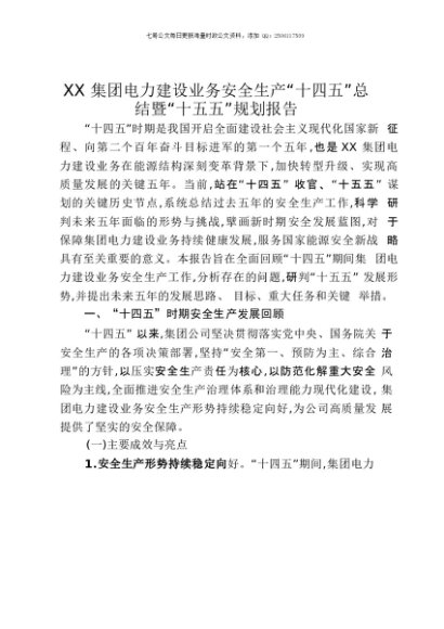 【七哥公文】2025年:XX集团电力建设业务安全生产“十四五”总结暨“十五五”规划报告+更多免费公文+VX:QiGeGongWen2024