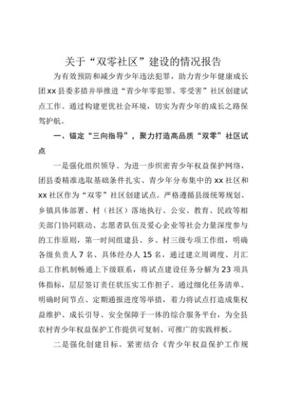 / 【七哥公文】2025年:关于“双零社区”建设的情况报告+更多免费公文+VX:QiGeGongWen2024