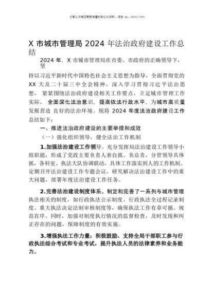 / 【七哥公文】2025年:X市城市管理局2024年法治政府建设工作总结+更多免费公文+VX:QiGeGongWen2024