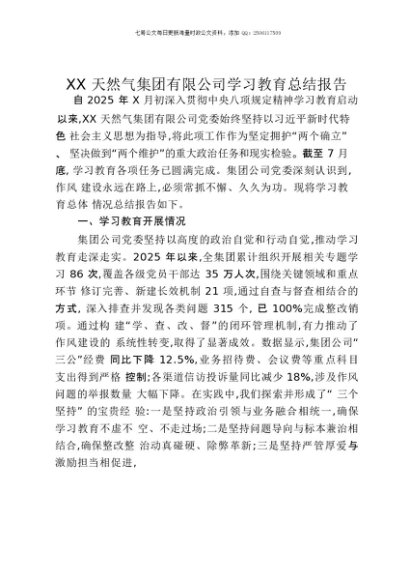 / 【七哥公文】2025年:XX天然气集团有限公司学习教育总结报告+更多免费公文+VX:QiGeGongWen2024