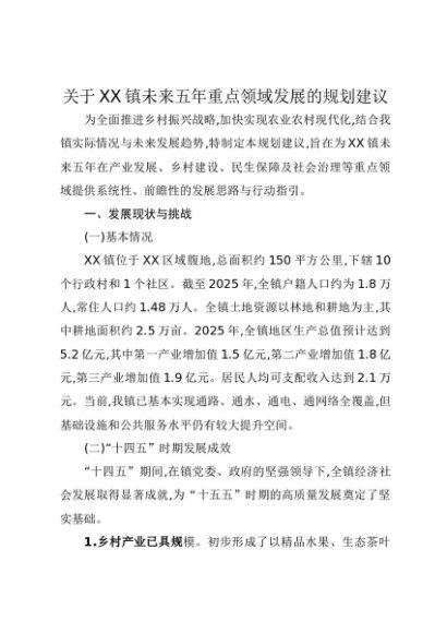 / 【七哥公文】2025年:关于XX镇未来五年重点领域发展的规划建议+更多免费公文+VX:QiGeGongWen2024