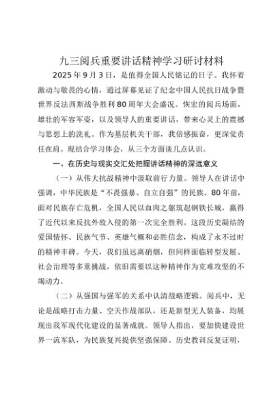 / 【七哥公文】2025年:九三阅兵重要讲话精神学习研讨材料+更多免费公文+VX:QiGeGongWen2024