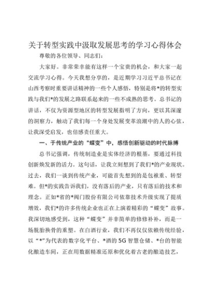 / 【七哥公文】2025年:关于转型实践中汲取发展思考的学习心得体会+更多免费公文+VX:QiGeGongWen2024