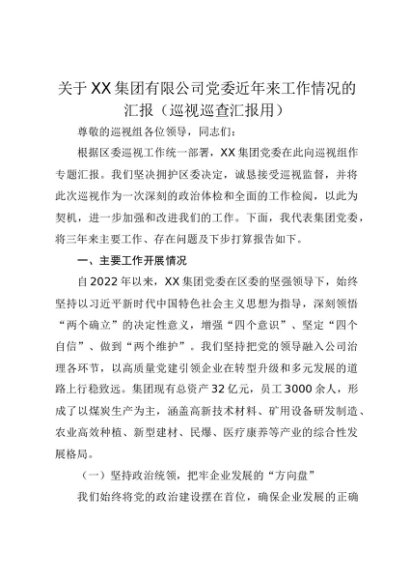 【七哥公文】2025年:关于XX集团有限公司党委近年来工作情况的汇报(巡视巡查汇报用)+更多免费公文+VX:QiGeGongWen2024