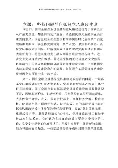 【七哥公文】2025年:党课讲稿:坚持问题导向 抓好党风廉政建设(金融国企)+更多免费公文+VX:QiGeGongWen2024